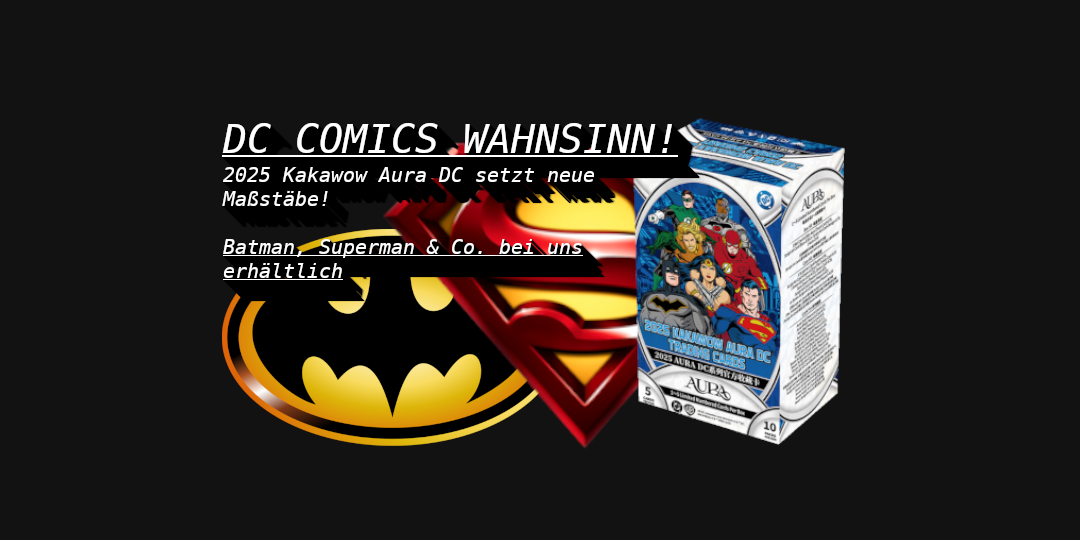 Wir sind Dein Onlineshop für Sport- und Non-Sport Sammelkarten! Egal ob Fußball, Football, Basketball oder Disney, Marvel, Entertainment... bei uns findest Du Deine Lieblingsprodukte von Panini, Topps, Kakawow und Co.