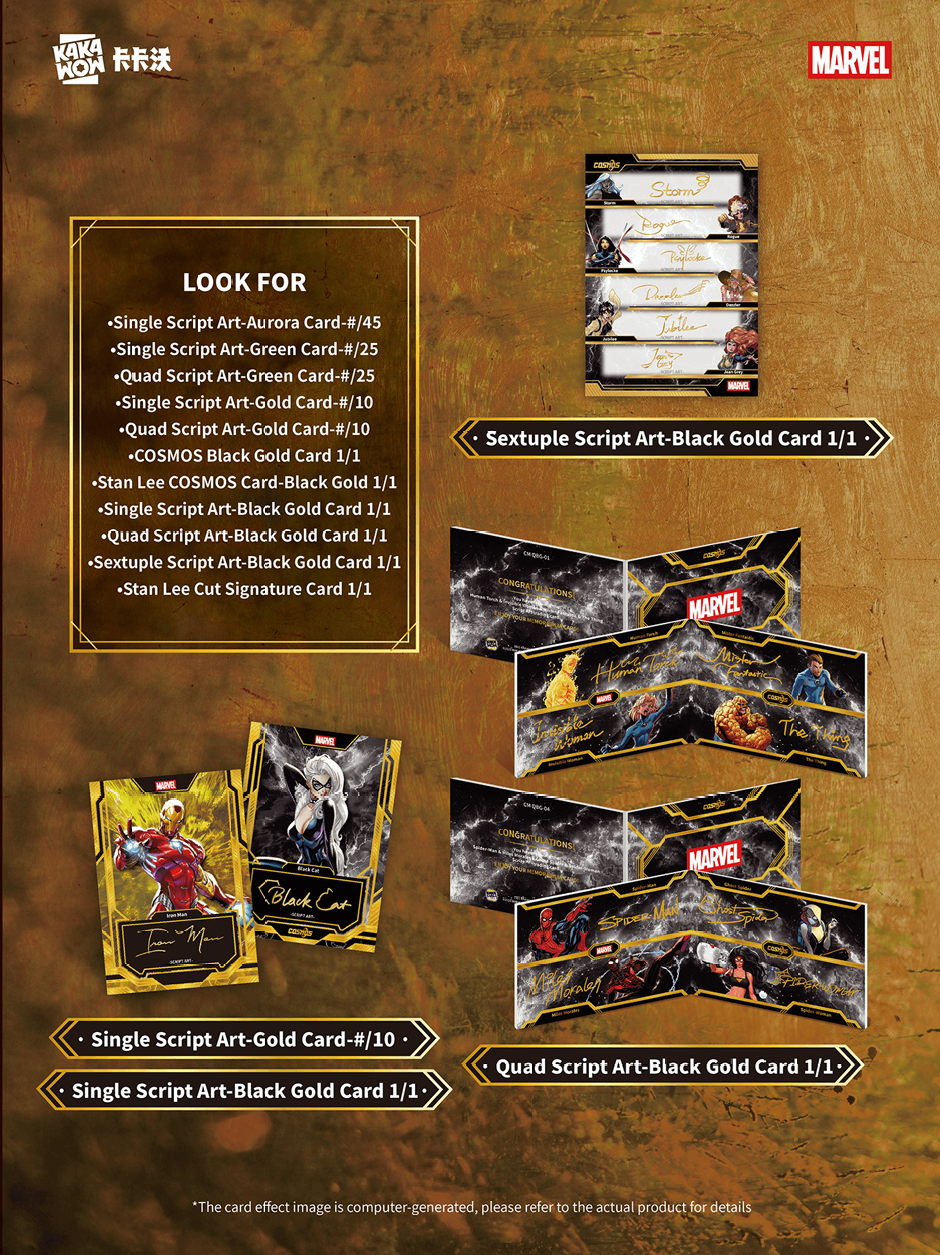 2025 Kakawow Cosmos Marvel ist das High-End Kartenset rund um die Helden und Schurken aus dem Marvel Universum! Spider-Man, Iron-Man, Thor, Wolverine, Captain America und Co. präsentieren sich in edlem Design auf hochwertigen Karten. Als Highlights des Sets gelten die Booklets der bekanntesten Charaktere aus den Marvel Comics und Filmen.