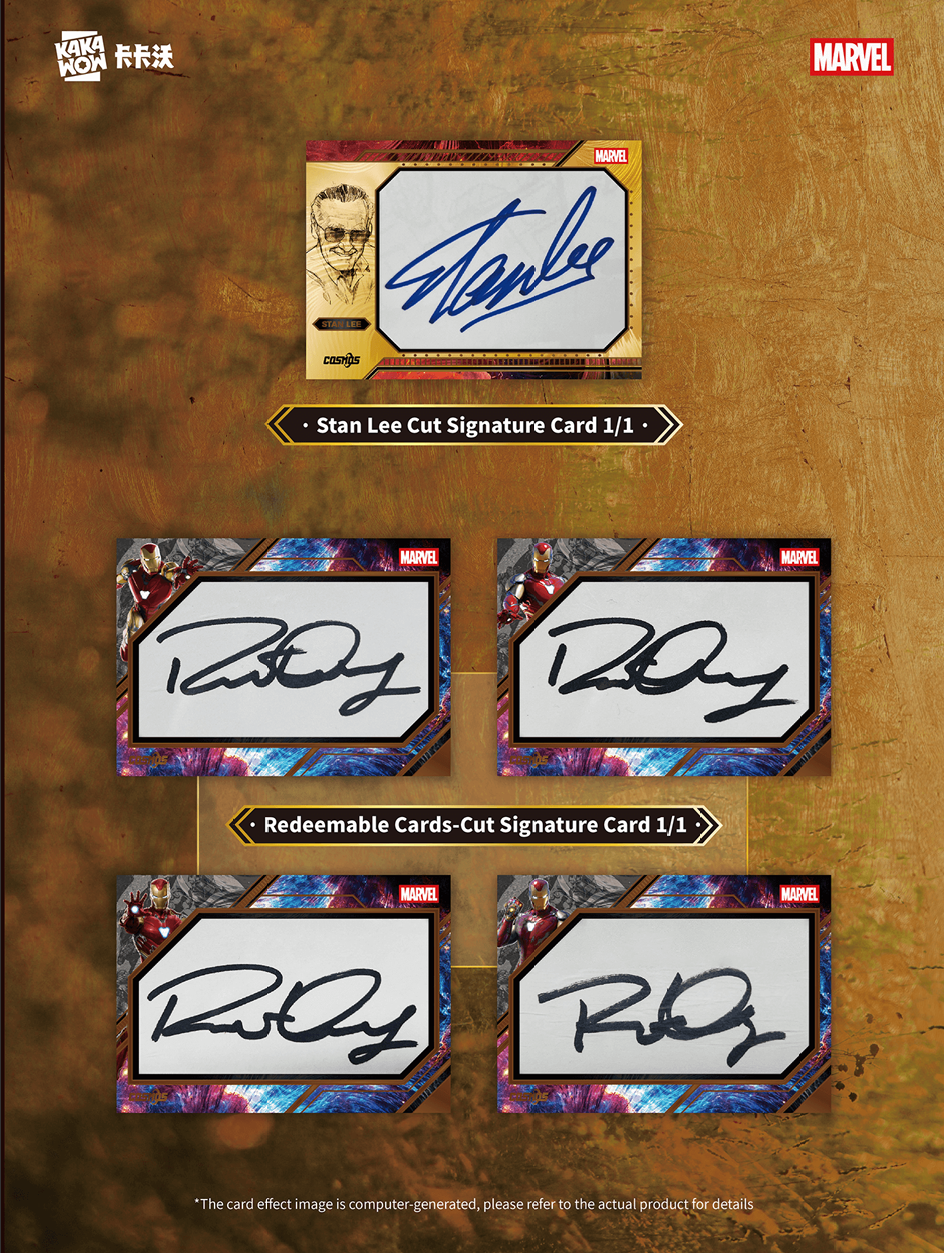 Achtung!!!! Das Set beinhaltet als absolute Juwelen Cut Signature Autogramme von Iron-Man Darsteller Robert Downey jr. und eine 1of1 von Marvel Ikone Stan Lee!